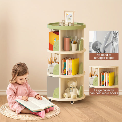 Heavy-Duty 3-Tier Rotating Bookshelf - 360° Spinning Bookcase with Wide Base, Modern White Floor Standing Shelf Organizer, Easy Assembly for Home Office, Living Room, Study - PVC\u002FABS Construction, Bookshelf Furniture -